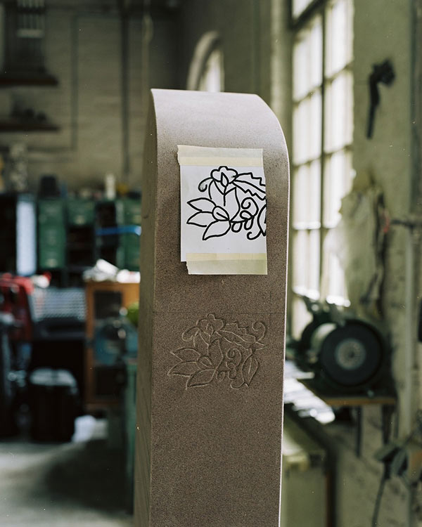 Sobald der Rohblock geliefert wird, lade ich Sie zu seiner Besichtigung ein. Gemeinsam nehmen wir uns Zeit, den Stein zu begutachten und im Detail zu planen. Wenn die Arbeit begonnen ist, lade ich Sie immer wieder zu Besuchen in die Werkstatt ein. An Detailentscheidungen, z. B. über die Oberflächenbearbeitung und selbstverständlich über die Schrift, werden Sie von mir beteiligt. So begleiten Sie den Fortgang der Arbeit im Atelier und bestätigen dann die Fertigstellung der Grabskulptur durch Ihre Abnahme.